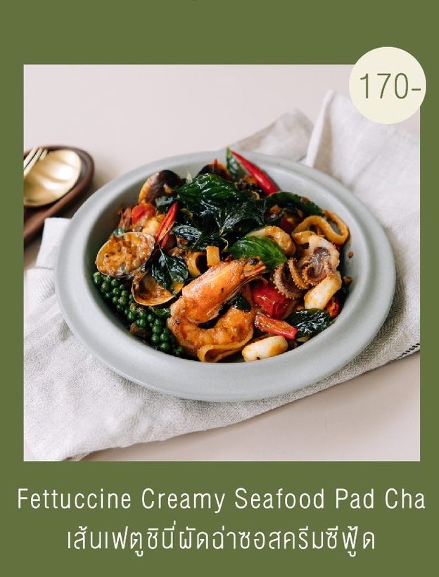 🍽️เมนูที่ 9 เส้นเฟตูชินี่ผัดฉ่าซอสครีมซีฟู้ด - Fettuccine Creamy Seafood Pad Cha🍽️