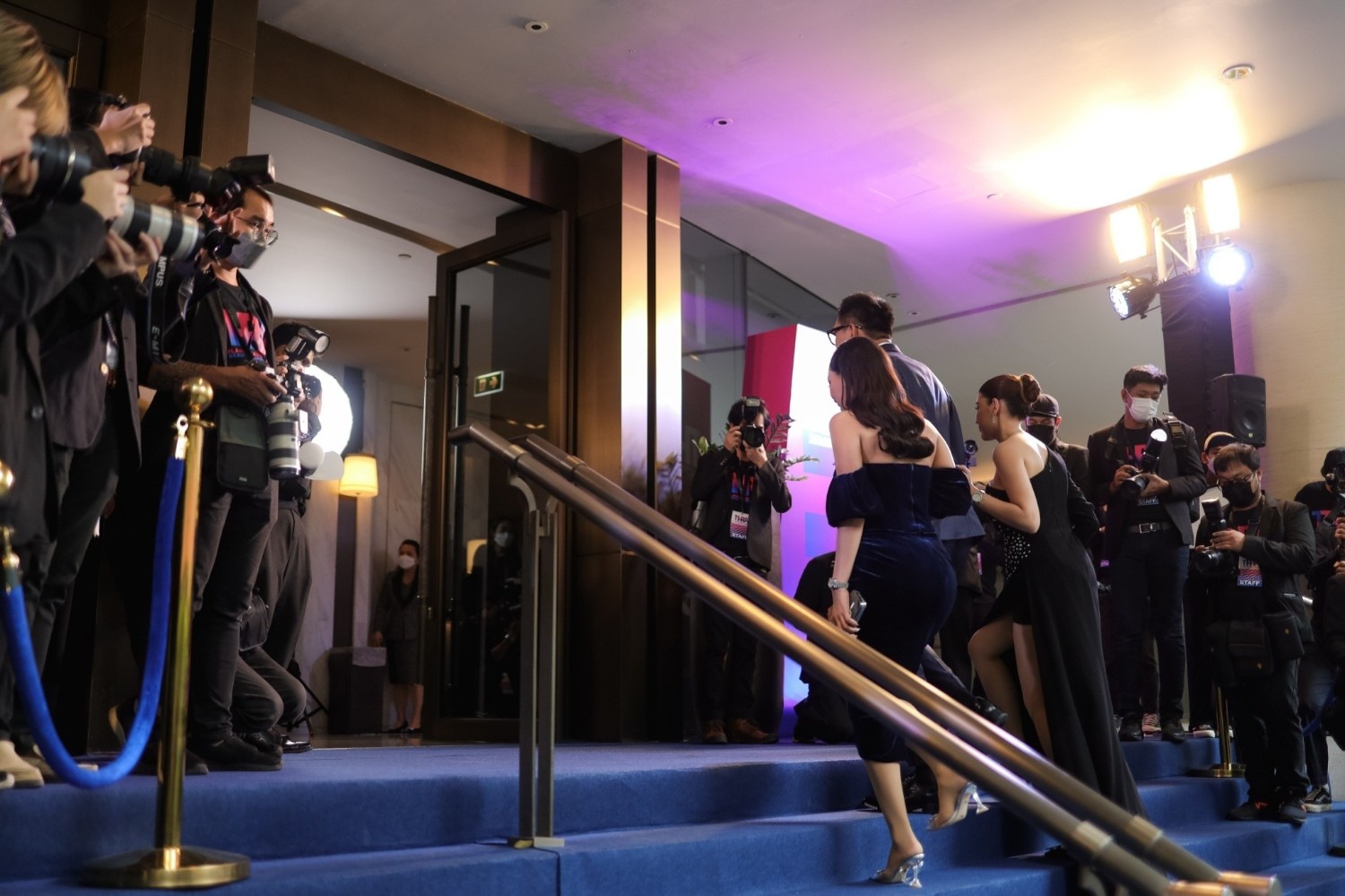 คุณจุ๋ม ปนัดดา และคุณไนท วีระชาติ ก่อนเข้างาน ก่อนที่จะให้สัมภาษณ์ผู้สื่อข่าวถึงความรู้สึกที่ได้รับเกียรติขึ้นรับรางวัล