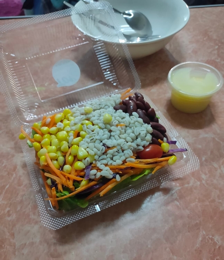 ตอนเย็นจึงอยากหากินผักบ้าง เลยไปซื้อสลัดมาเพื่อหวังทดแทน