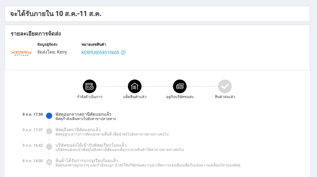 สั้งของวันที่ 08/08 ของจะถึง วันที่ 10/08 นี่ก็ 16/08 ไปแล้วของติดตามไม่ได้เลย ไม่ขยับไปไหนเลยตั้งแต่วันที่ 09/08 ของขวัญวันแม่สงสัยจะได้วันพ่อ