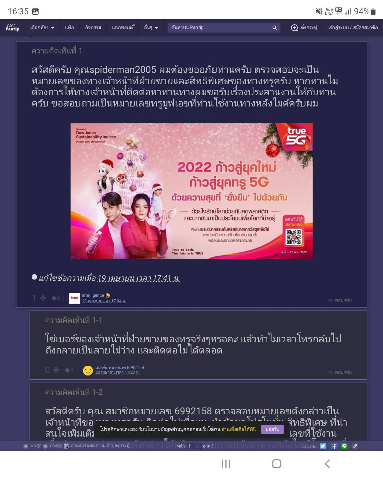 เราลองค้นหาดูก็เจอว่าเป็นเบอร์ของเจ้าหน้าที่ฝ่ายขายและสิทธิพิเศษของทรูจริงๆ