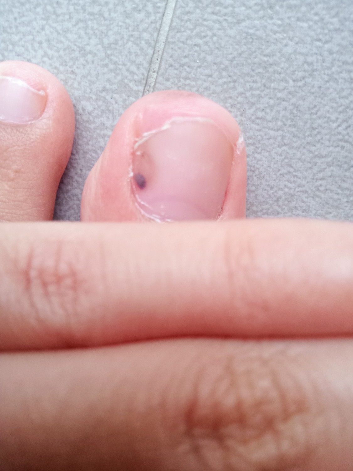 เมื่อคืนนี่เองค่ะ ขอบเล็บเกิดมีเส้นสีดำเกิดขึ้นค่ะ ข้างในเหมือนมีเลือดดำๆ ติดอยู่ด้วย แต่ไม่ได้ไปกระแทกกับอะไรนะคะ มันเกิดจากอะไรคะ