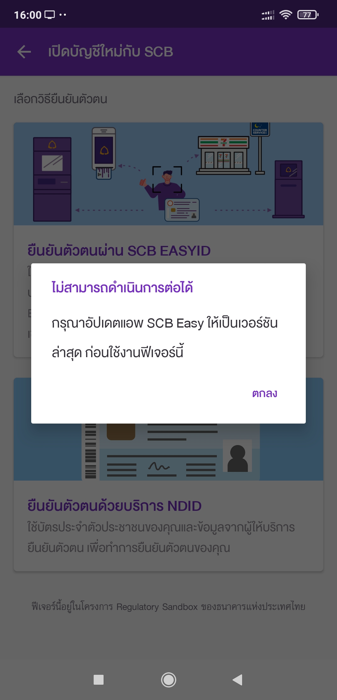 เข้าหน้ายื่นยันตัวของ scb easy ไม่ได้