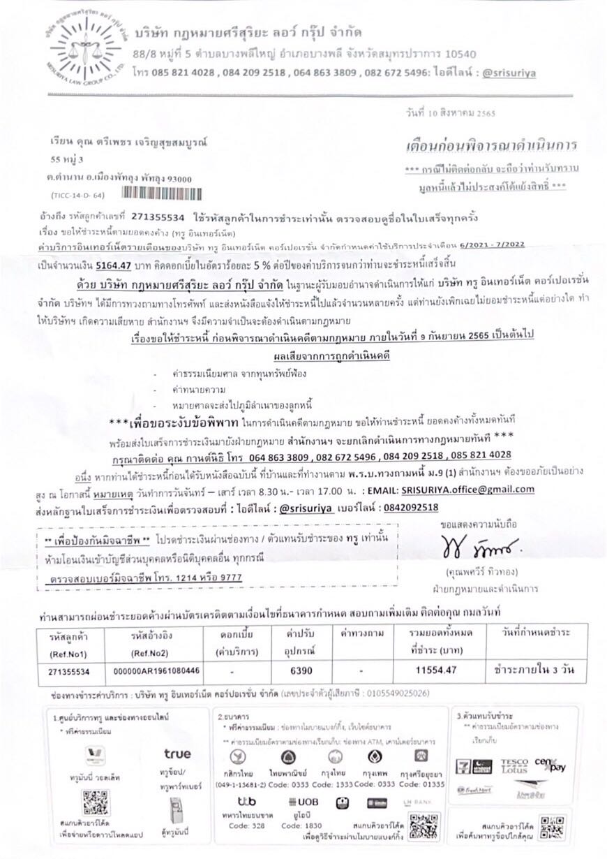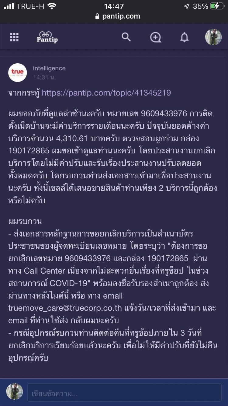 ดำเนินการทุกอย่างตามที่บอกเรียบร้อยแล้วแต่ยังมีหนังสือทวงหนี้มาอีก หรือนี่เป็นบริการหลังการขายของทรู บริษัทคุณดูแลลูกค้าได้แค่นี้แล้วจริงๆ เหรอ ตอนนี้บ้านผมใช้ทรูรายเดือน 5 เบอร์ แถมเป็นลูกค้าเซเลเนตทั้งนั้น