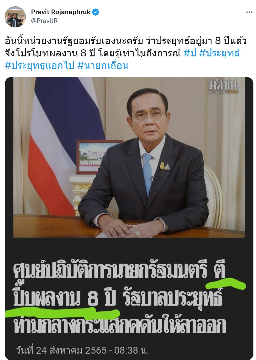 หน่วยงานของนายก ยอมรับเองแล้วว่านายกอยู่ครบ 8 ปีแล้ว