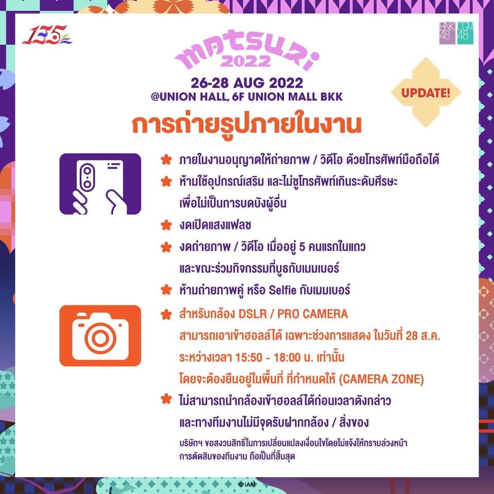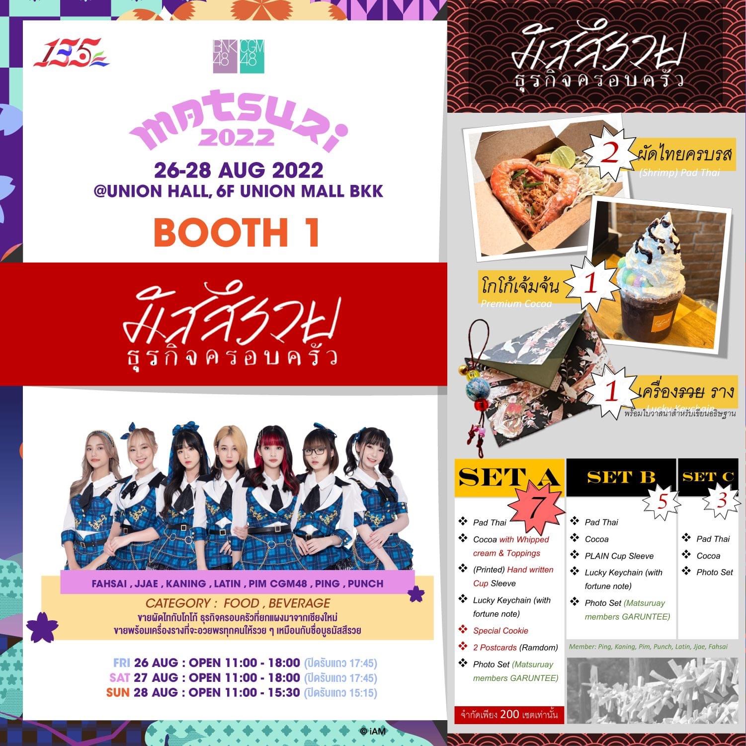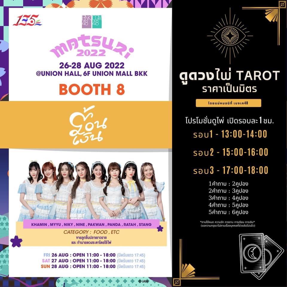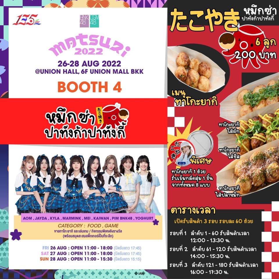 มีทั้งกำหนดการของงานและรายละเอียดของบูธแต่ละชมรม งานจัดขึ้นวันที่ 30-31 กรกฎาคม 2565 ที่เซ็นทรัล เชียงใหม่ แอร์พอร์ต Cr. Facebook - CGM48 https://www.facebook.c