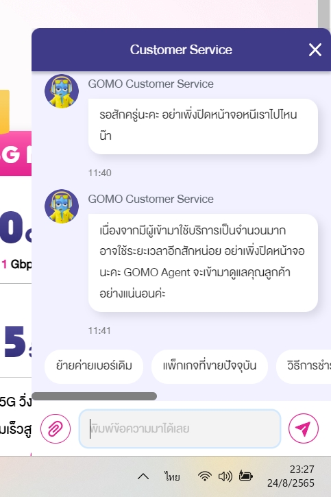 GOMO by AIS แชทห่วยมาก แจ้งแชทไปชั่วโมงกว่าละ ยังไม่มีแม้แต่สัญญาณของสิ่งมีชีวิตตอบกลับคืนมา