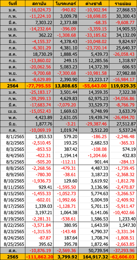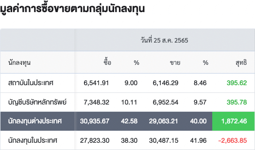 Sinthorn Summary 25/8/2565 : ต่างชาติซื้อสุทธิ 1,872.46 ลบ.