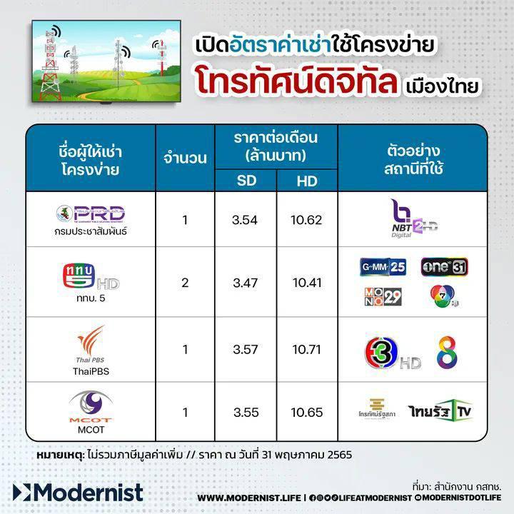 เปิดอัตราค่าเช่าใช้โครงข่ายโทรทัศน์ดิจิทัลเมืองไทย