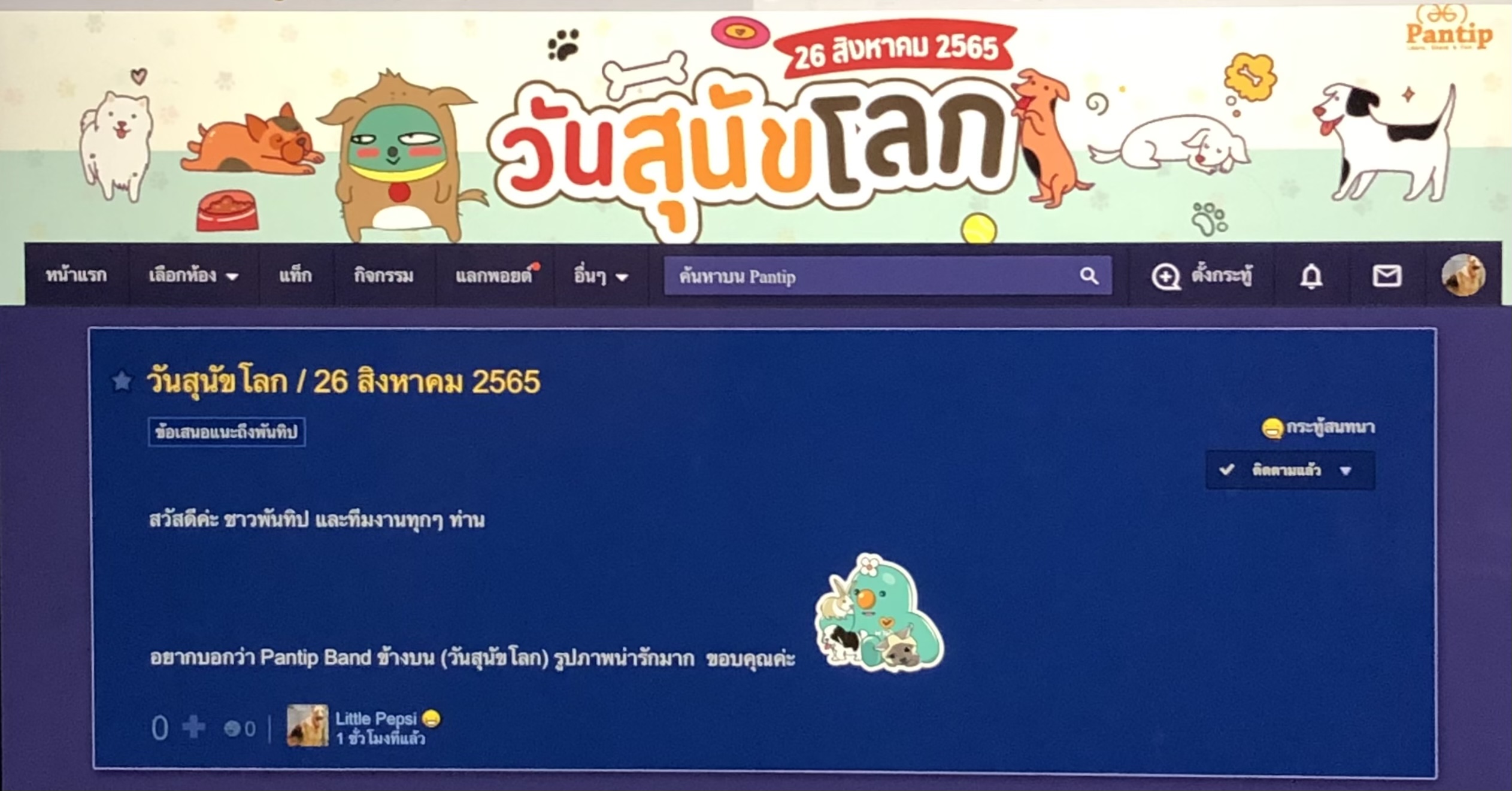 อยากบอกว่า Pantip Band ข้างบน (วันสุนัขโลก) รูปภาพน่ารักมาก ขอบคุณค่ะ
