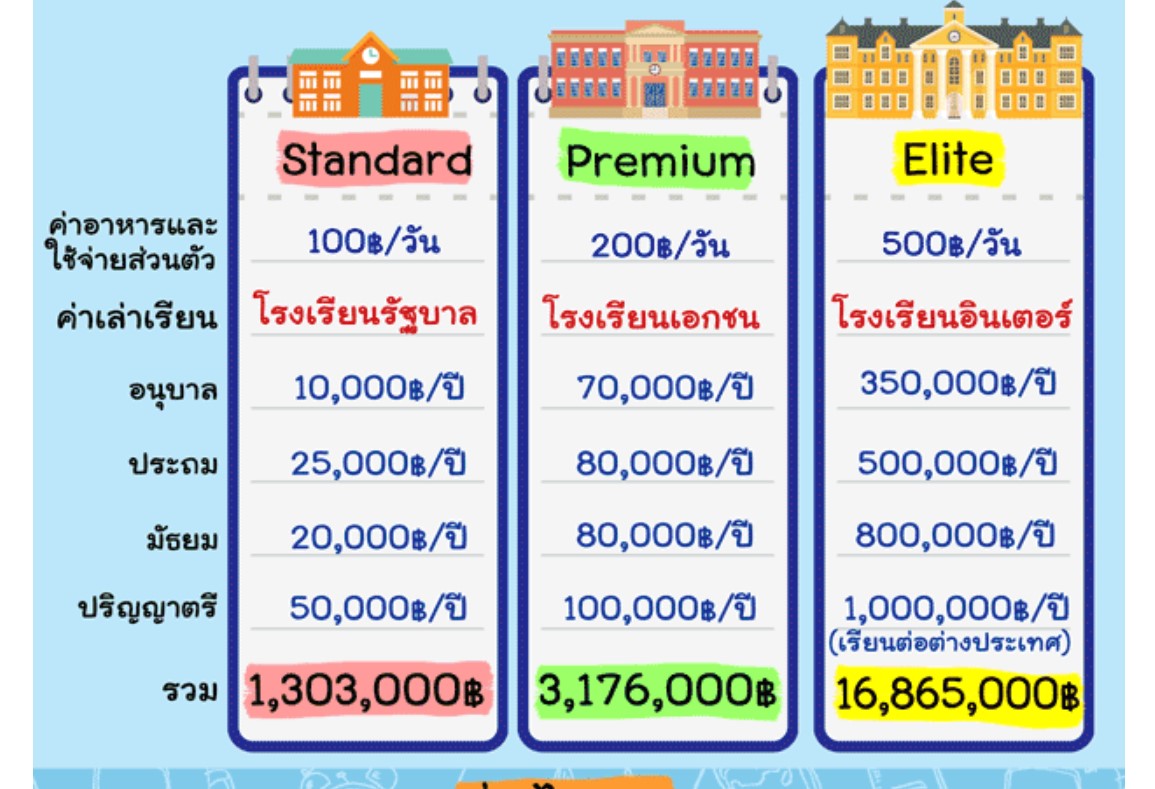 หลังจากนั้นก็จะเป็นวัยเรียน ก็มีหลายระดับราคา ถ้ามั่นใจว่ารายได้มั่นคง ก็ไม่จำเป็นต้องเตรียมเงินก้อนเอาไว้