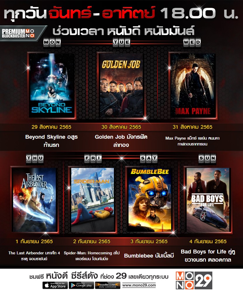 Premium Blockbuster วันที่ 29 สิงหาคม - 4 กันยายน เวลา 18.00 น. ทางช่อง MONO29