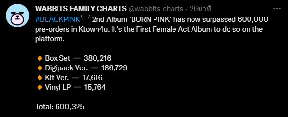 'BORN PINK' has now surpassed 600,000 pre-orders in Ktown4u