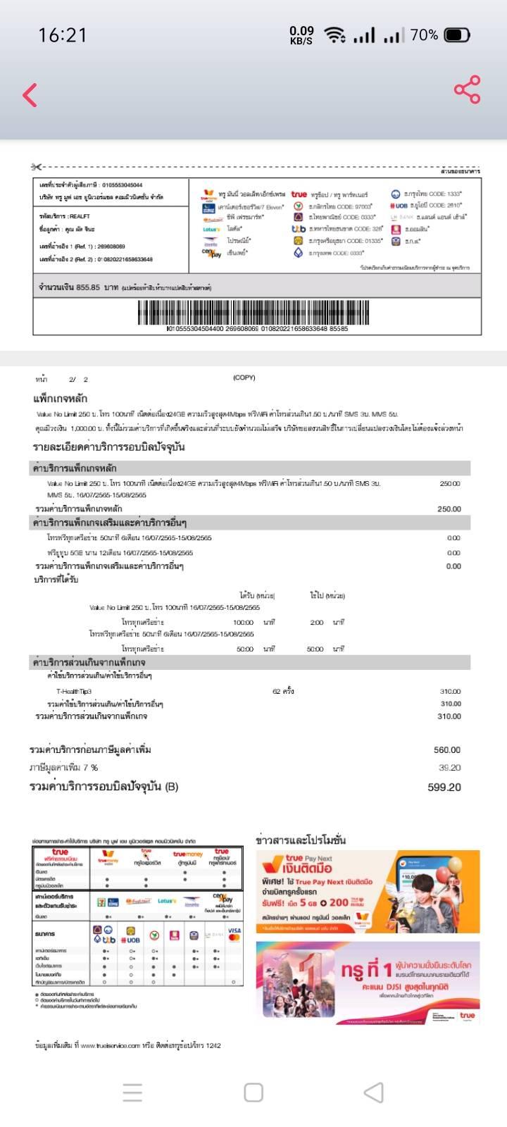 ทรูอินเทอร์เน็ต คิดค่าบริการอะไรนักหนา ค่าบริการส่วนเกิน จากแพ็กเกจ T-HealthTip3