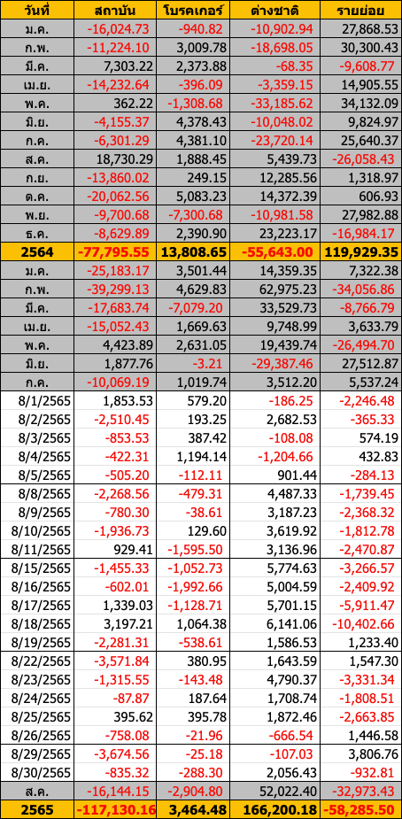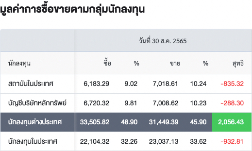 Sinthorn Summary 30/8/2565 : ต่างชาติซื้อสุทธิ 2,056.43 ลบ.