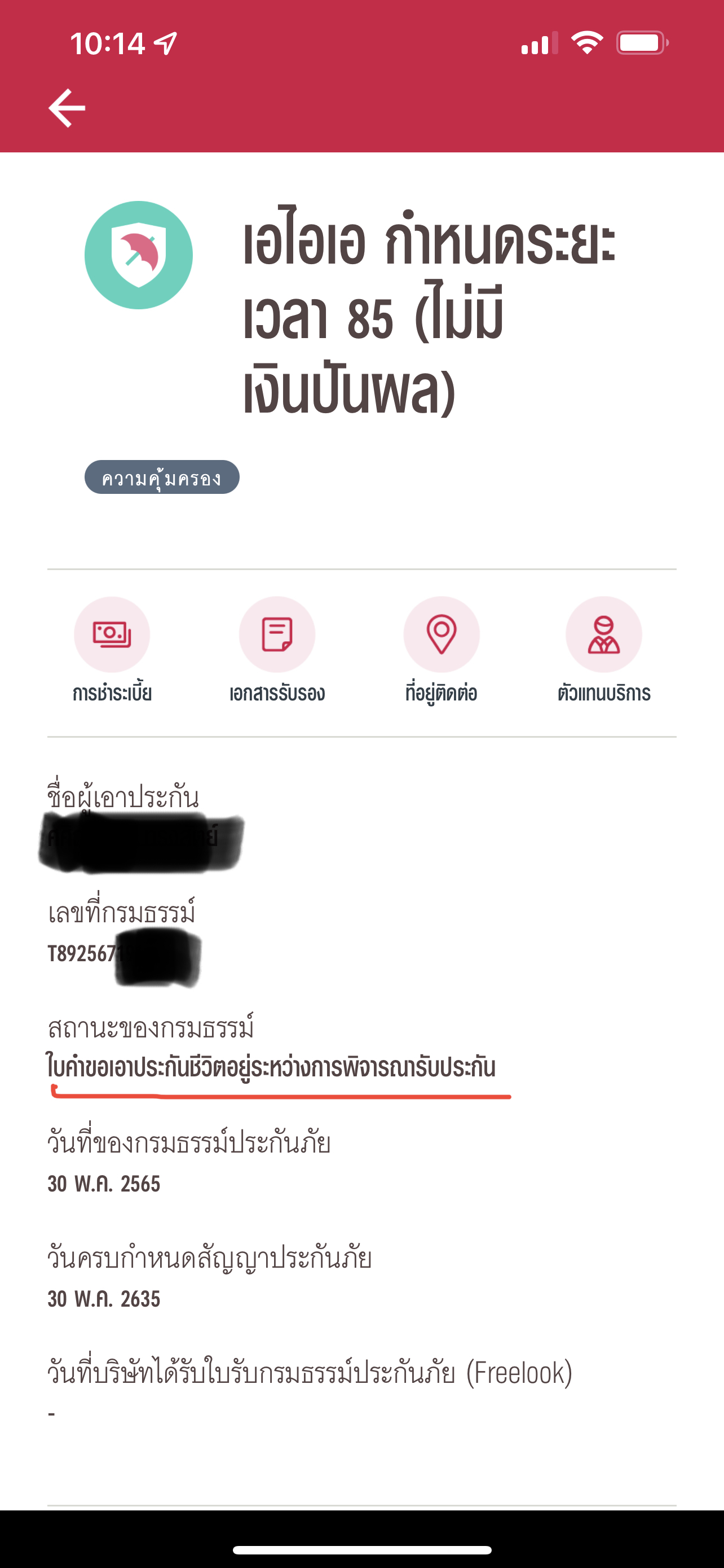 จนวันนี้ 31 สค 65 สถานะกรมธรรม์ยังรอพิจารณาอยู่???