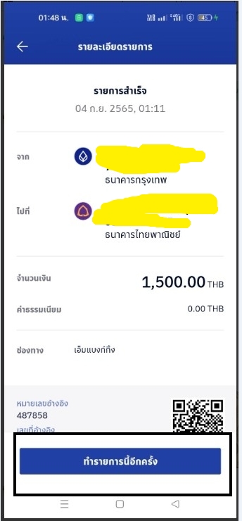 ขอสอบถามหน่อยค่ะ คือบัญชีต้นทางโอนเข้ามา แต่ยอดเงินไม่เข้าปลายทาง ( แต่ในสลิปนี้ ให้ทำรายการนี้อีกอีกครั้ง )
