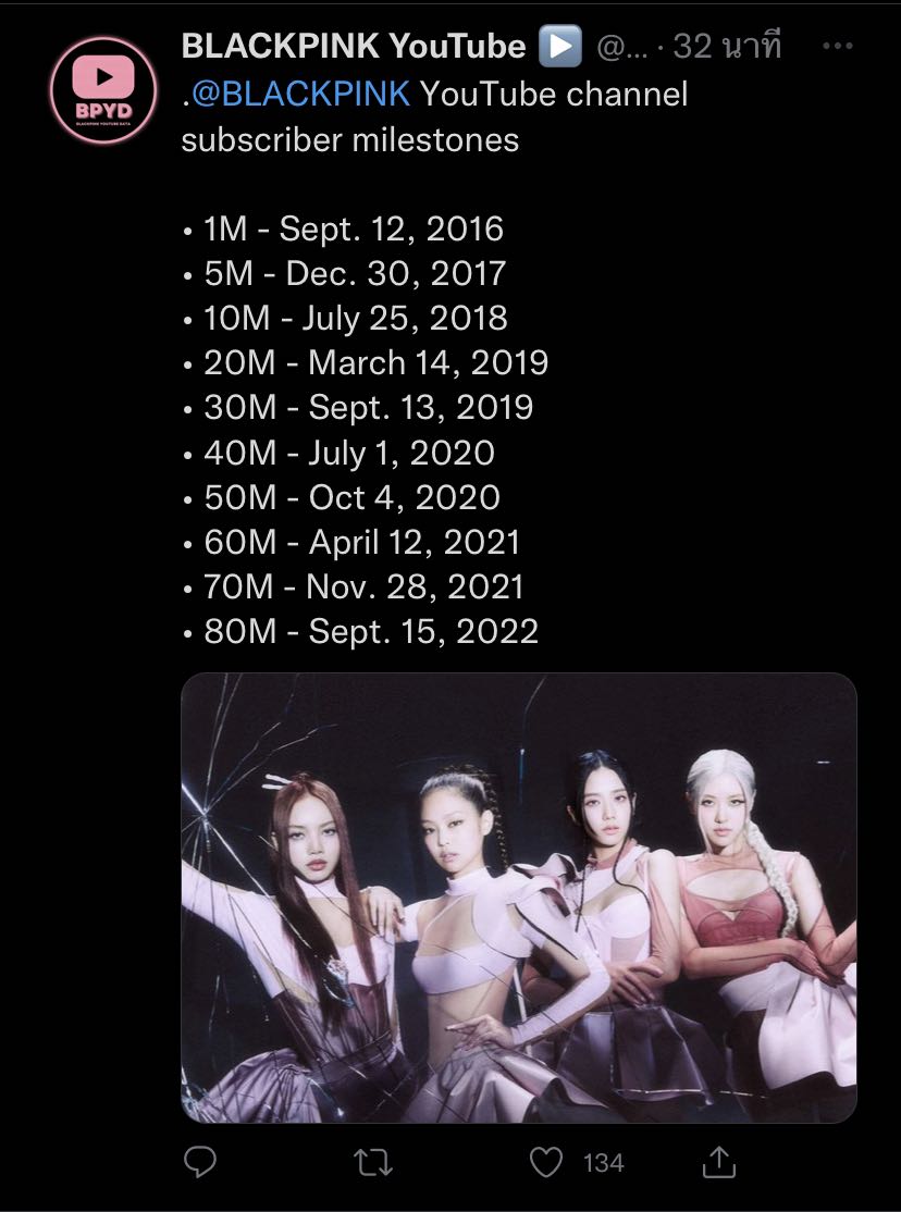BLACKPINK YOUTUBE OFFICIAL มียอดผู้ติดตามทะลุ 80 ล้าน 🎉🎉🎉
