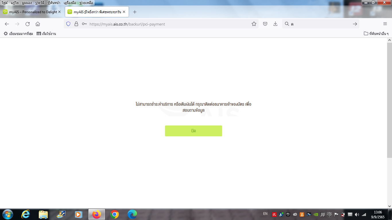 จ่ายค่ามือถือ ais ผ่านเดบิต ttb ตัดเงินไปแล้วแต่หน้าเว็บ ais แจ้งว่าไม่สำเร็จ