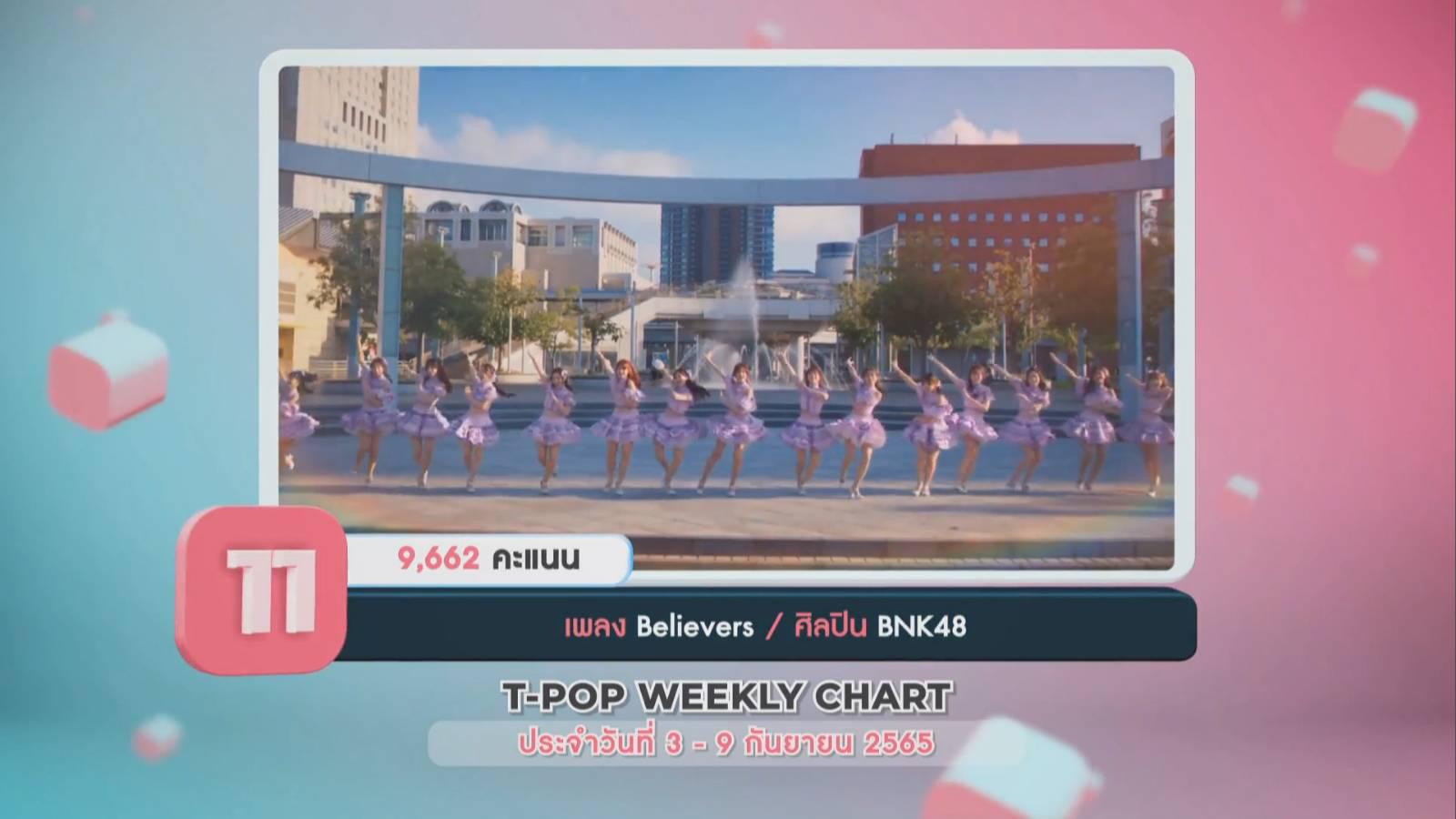 เพลง Believers เพลงหลักซิงเกิลที่ 12 ของวง BNK48 ประเดิมสัปดาห์แรกใน T-Pop Weekly Chart ไปด้วยอันดับที่ 11