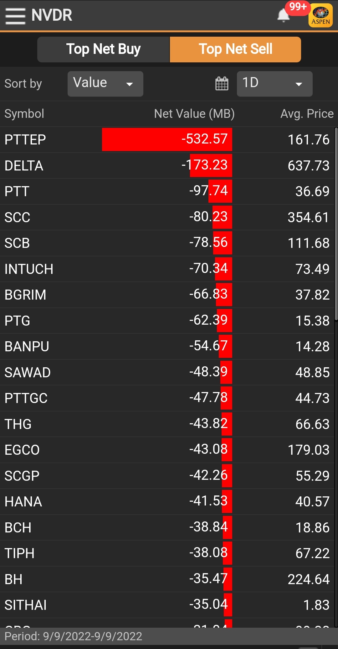 TOP NVDR ซื้อ-ขาย วันที่15/9/2022