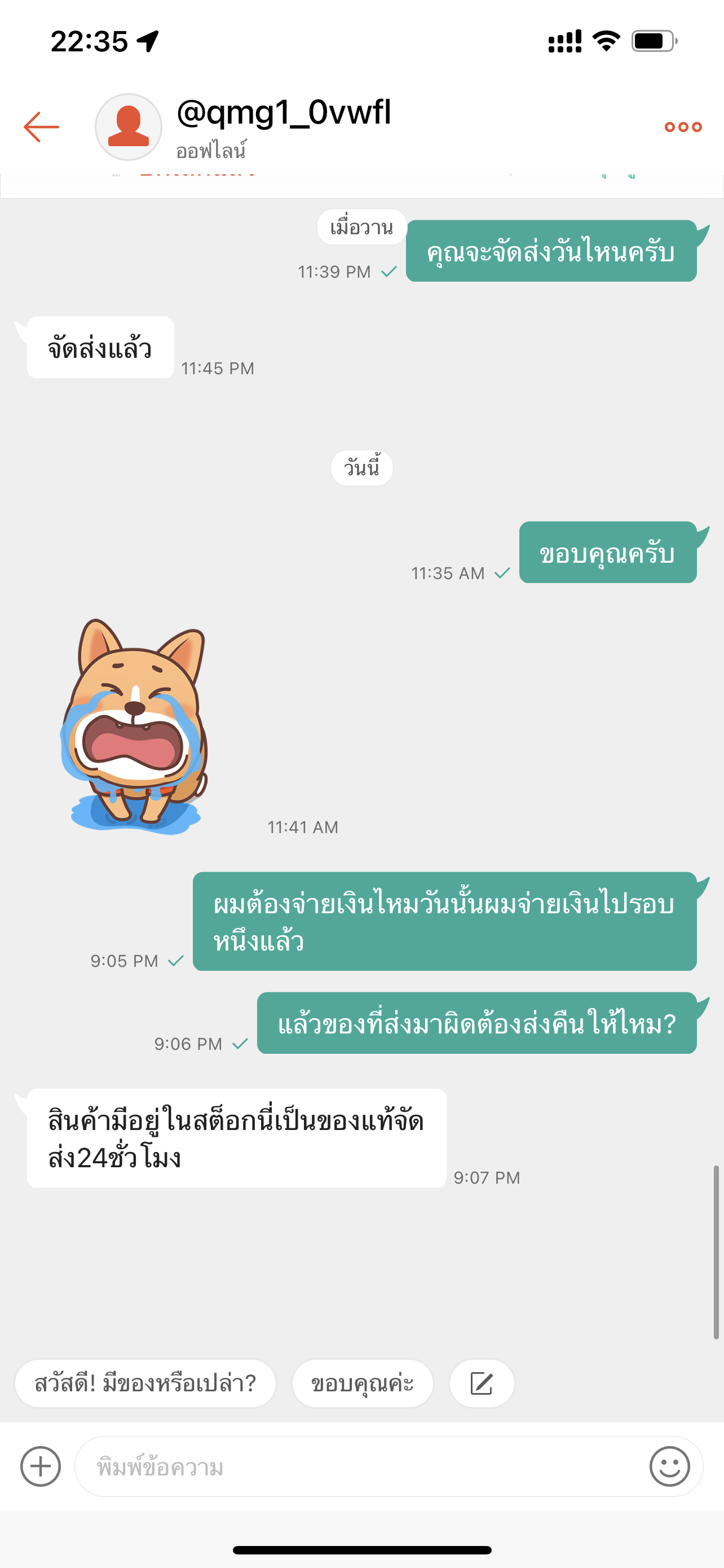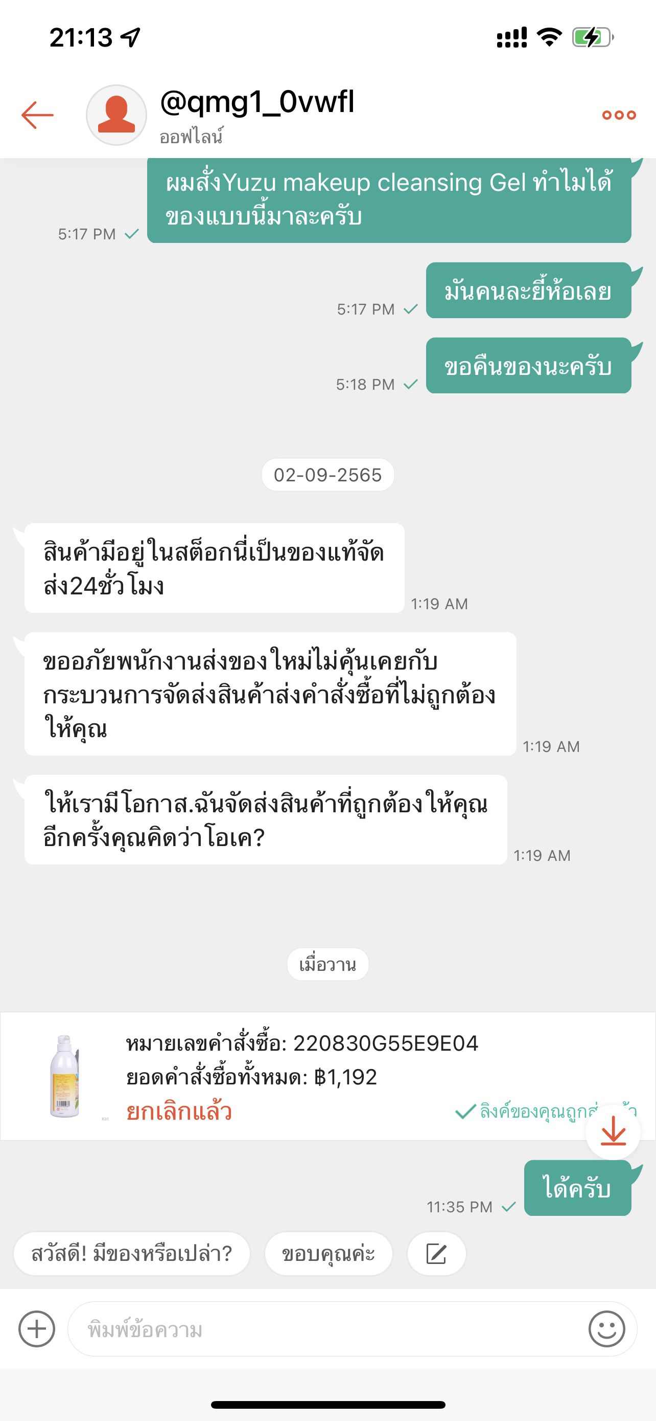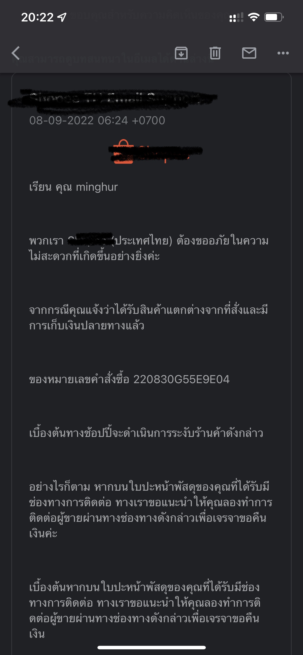 ผมสั่งของผ่านแอพSแบบจ่ายปลายทาง(ค่าของ1192฿)ขนส่งผ่านทางKพอวันมาส่งสินค้าจ่ายเงินให้พนักงานเสร็จเปิดของออกมาสินค้าไม่ตรงตามที่สั่งเลยพอติดต่อทางร้านบอกจะส่งของใหม่ให้พนักงานคนใหม่฿&@@&&บลาๆๆๆผ่านไป2-3วันติดต่อกลับไปทางร้านขอเลขที่ส่งพัสดุเงียบเลยแจ้งไปทางบริษัทSทางบริษัทSก็บอกให้ไปตามคืนเงินกับบริษัทKแล้วเอาเบอร์โทรให้ พอโทรไปทางบริษัทK ทางK บอกต้องไปตามกับบริษัทS ทางบริษัทKโอนไปให้ทางSแล้ว โยนไปโยนมาสรุปสุดท้ายบอกให้แจ้งความ สรุปคือน่าจะไม่ได้เงินคือโอเครต่อไปกูไปทาง lazada ดีกว่ามั้ง