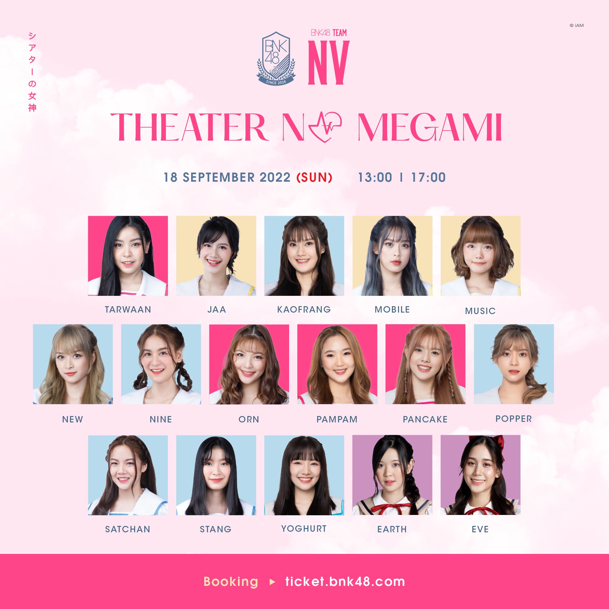 18 กันยายน 2565 (อาทิตย์) เวลา 17:00 น. : BNK48 Team NV 1st Stage「Theater no Megami 」