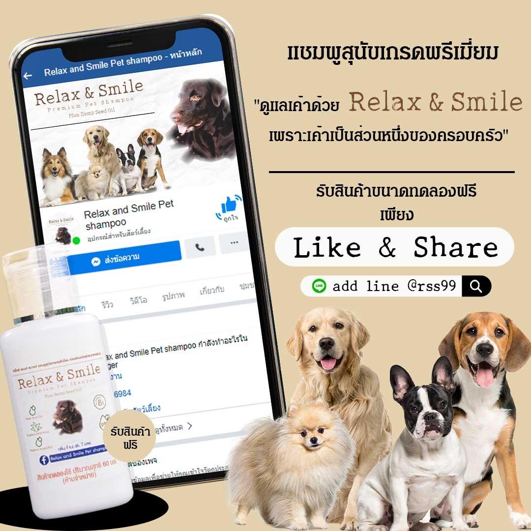 คนรักหมาห้ามพลาด!!! แจกฟรีแชมพูสุนัข Relax & Smile ขนาดทดลองใช้ 60ml. แจกจริงพร้อมส่งฟรี