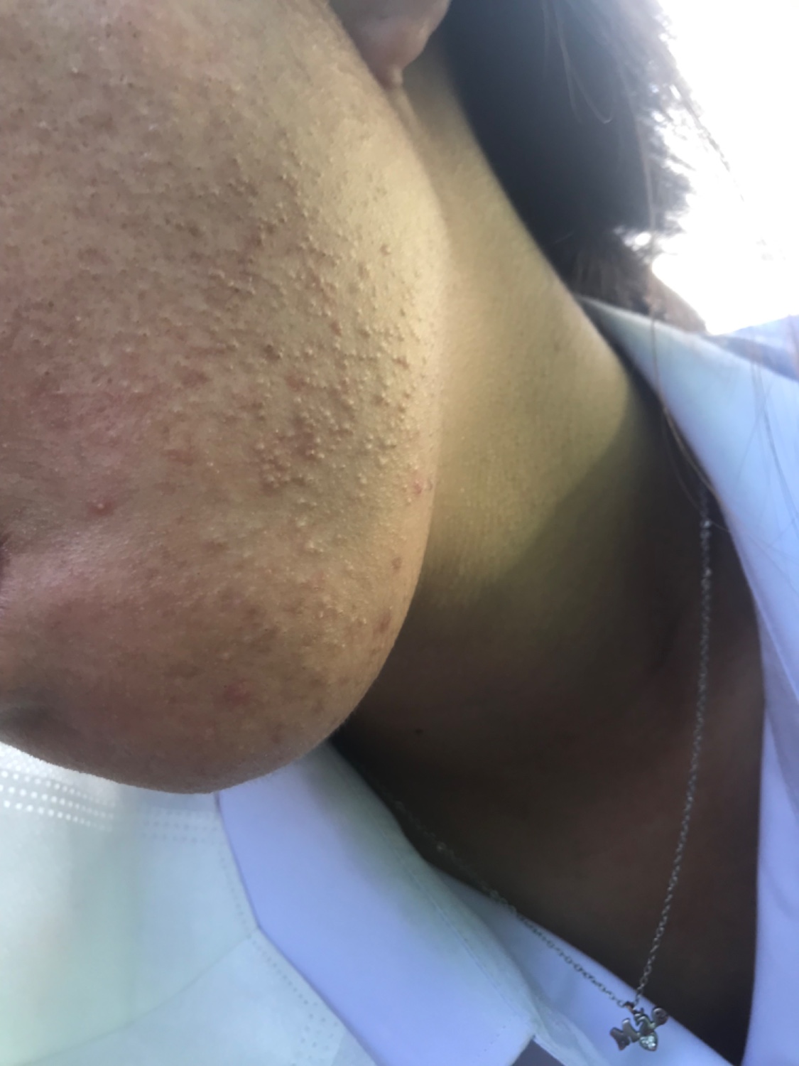สิวแบบนี้เรียกว่าอะไรหรอคะอยู่ดีๆก็เห่อขึ้นมาหนูไม่เคยเป็นขนาดนี้เลยค่ะ ขึ้นมาไวมากเป็นแบบในภาพเลยค่ก่อนนหน้านั้นไม่มีสิวเยอะค่ะ ก่อนหน้านี้ใช้โทนเนอร์แพดลากลาสสีเขียวเลยแพ้เลิกใช้พักหน้าตัวเองไปแล้วก