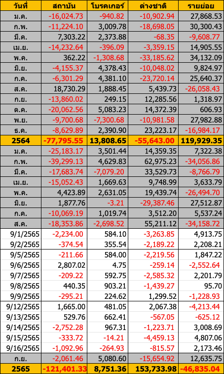 Sinthorn Summary 16/9/2565 : ต่างชาติขายสุทธิ -815.57 ลบ.