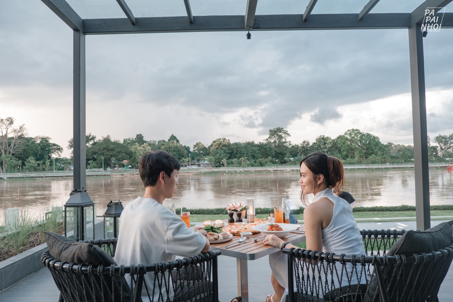 สามารถมานั่งเล่น เปิดโน็ตบุ๊ค นั่งทำงานได้ หรือใครจะสั่งไปทานที่สวน ชมวิวแม่น้ำไปด้วย ก็ได้เช่นกันค่ะ