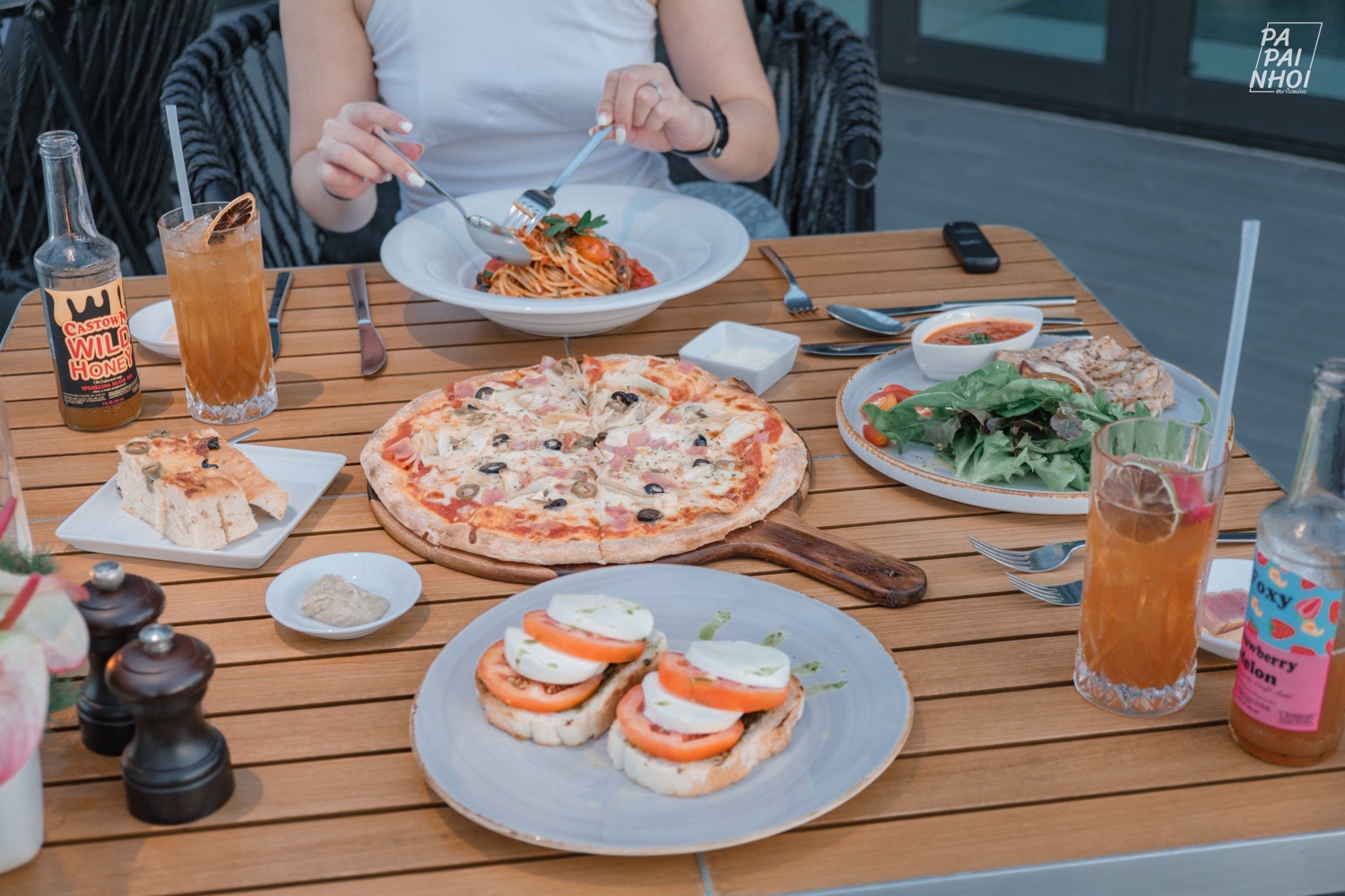เราได้ลองชิมทั้งอาหารไทยและอิตาเลียนเลย เมนู Recommend ที่ไม่อยากให้พลาด คือ พิซซ่าอิตาเลี่ยน ถาดนี้เลย
