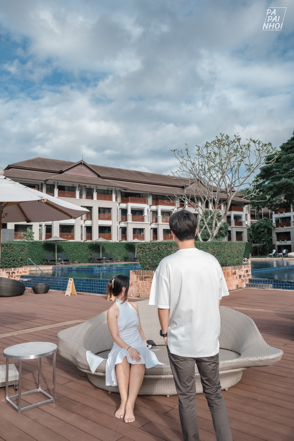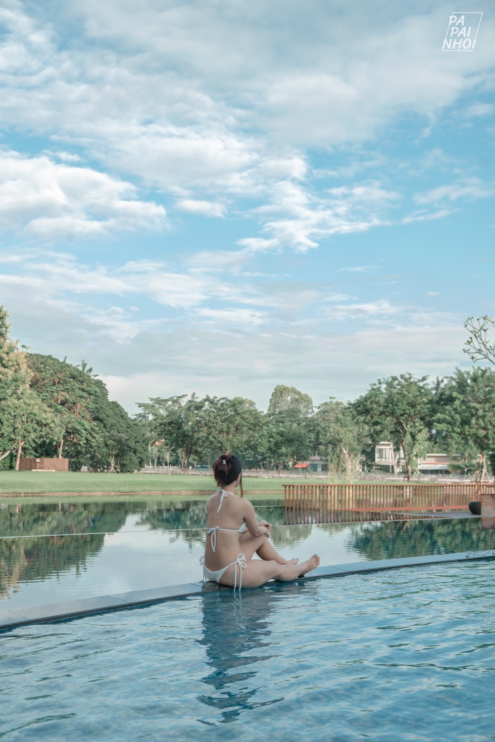 ใครจะมานั่งชิลริมสระ สั่งเครื่องดื่มมาดื่ม ก็สามารถทำได้ค่ะ ยิ่งช่วงใกล้พระอาทิตย์ตก มุมนี้ยิ่งสวยเลย