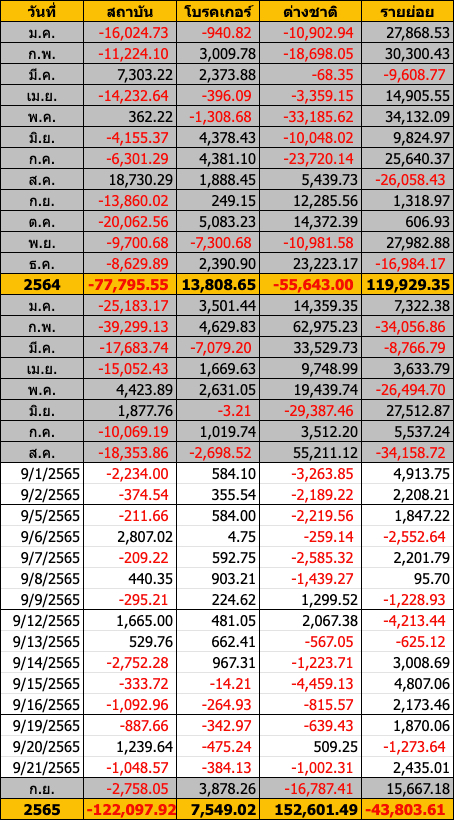 Sinthorn Summary 21/9/2565 : ต่างชาติขายสุทธิ -1,002.31 ลบ.