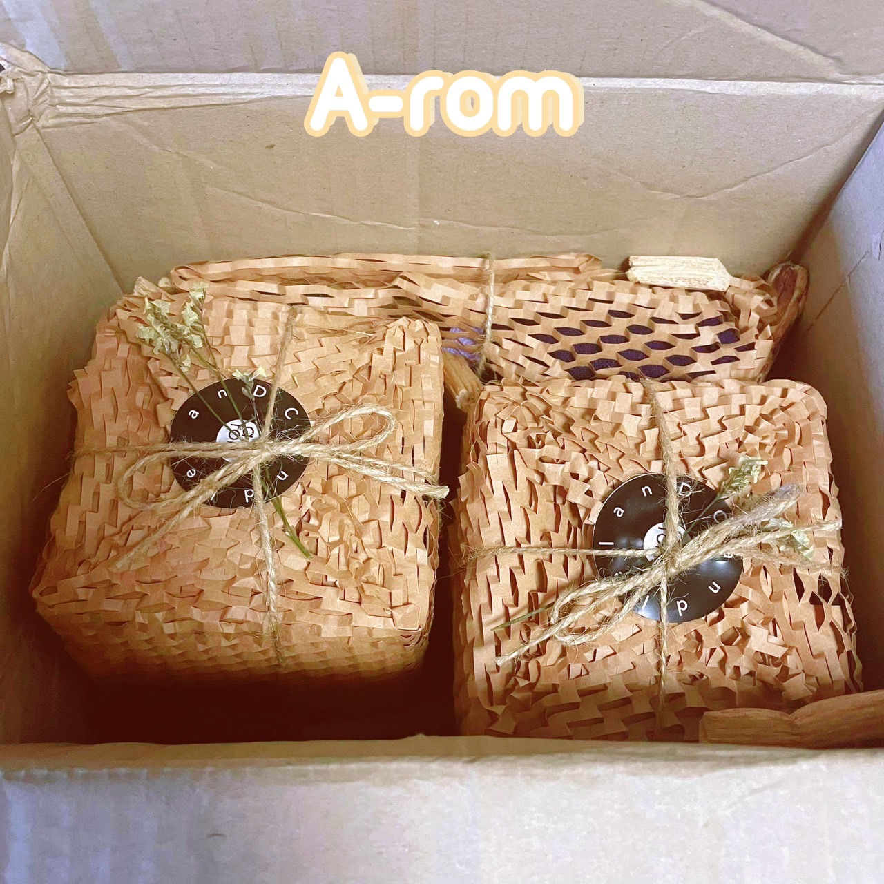 แบรนด์ A-rom เป็นแบรนด์ไทย จากจังหวัดแพร่ วัดสดุที่ใช้ จะเป็นวัสดุแนวธรรมชาติทั้งหมด ตั้งแต่แพคเกจ ตัวเทียน ไปจนถึงไส้เทียนกันเลยทีเดียว หลังจากมองหาเนื้อคู่ถ้วยเทียนที่จะลงตัวกับถุงผ้าม่อฮ่อมเพื่อบอกเล่าเรื่องราวของกลิ่นหอมบ้านเกิด local scented ได้ละมุนละไม แต่คงความสนุกสนานไว้ครบถ้วน อีกทั้งอยากให้ไปวางไว้มุมต่างๆ ของบ้าน ก็มาพบถ้วยเซรามิคน้อยแสนหวาน ที่จะช่วยแต่งแต้ม mood ของการมองเห็นได้น่ารักไม่แพ้ความหอมเลย