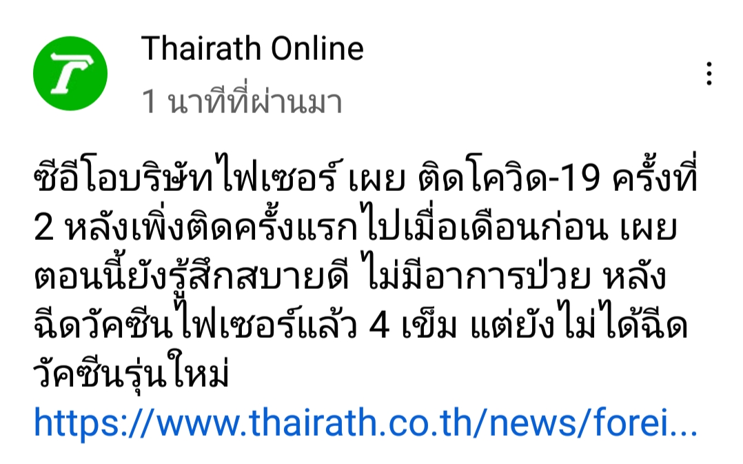 ซีอีโอบริษัท ไฟเซอร์ ติดโควิดรอบที่ 2 ไม่มีอาการอะไร