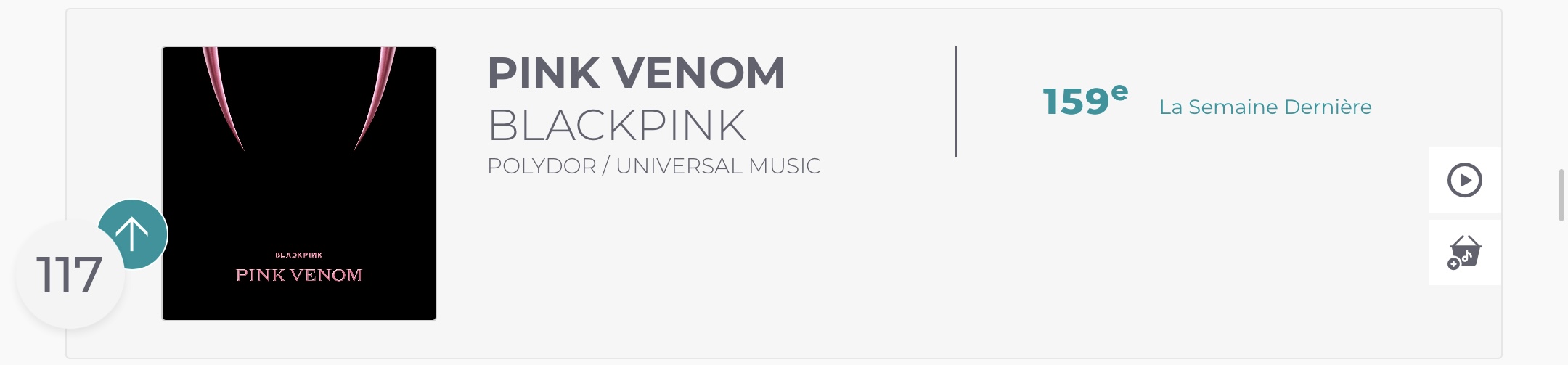 BLACKPINK เป็นศิลปินเกาหลีรายแรกและรายเดียวที่มีเพลงไปเปิดตัวบน LE SNEP Singles Chart ถึง 3 เพลง