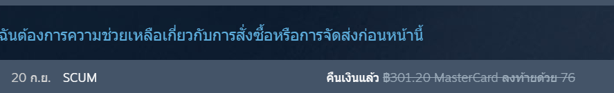 ขอคืนเงินจากsteamแล้วยังไม่ได้เงินคืน