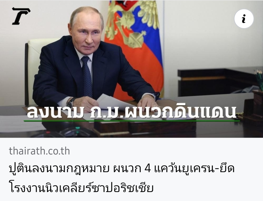https://pantip.com/topic/43133641/ ถ้าวันนั้น ปูตินเชื่อฟังคำแนะนำพิธา วันนี้คงไม่ต้องลี้ภัยเหมือนอัสซาด