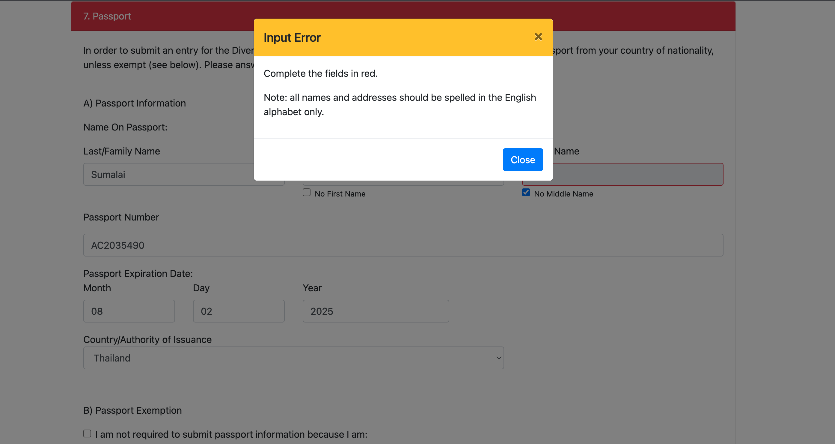 ขอความช่วยเหลือขอวิธีแก้ไข Error หน้าเว็บสมัคร Green Card Lotto ครับ