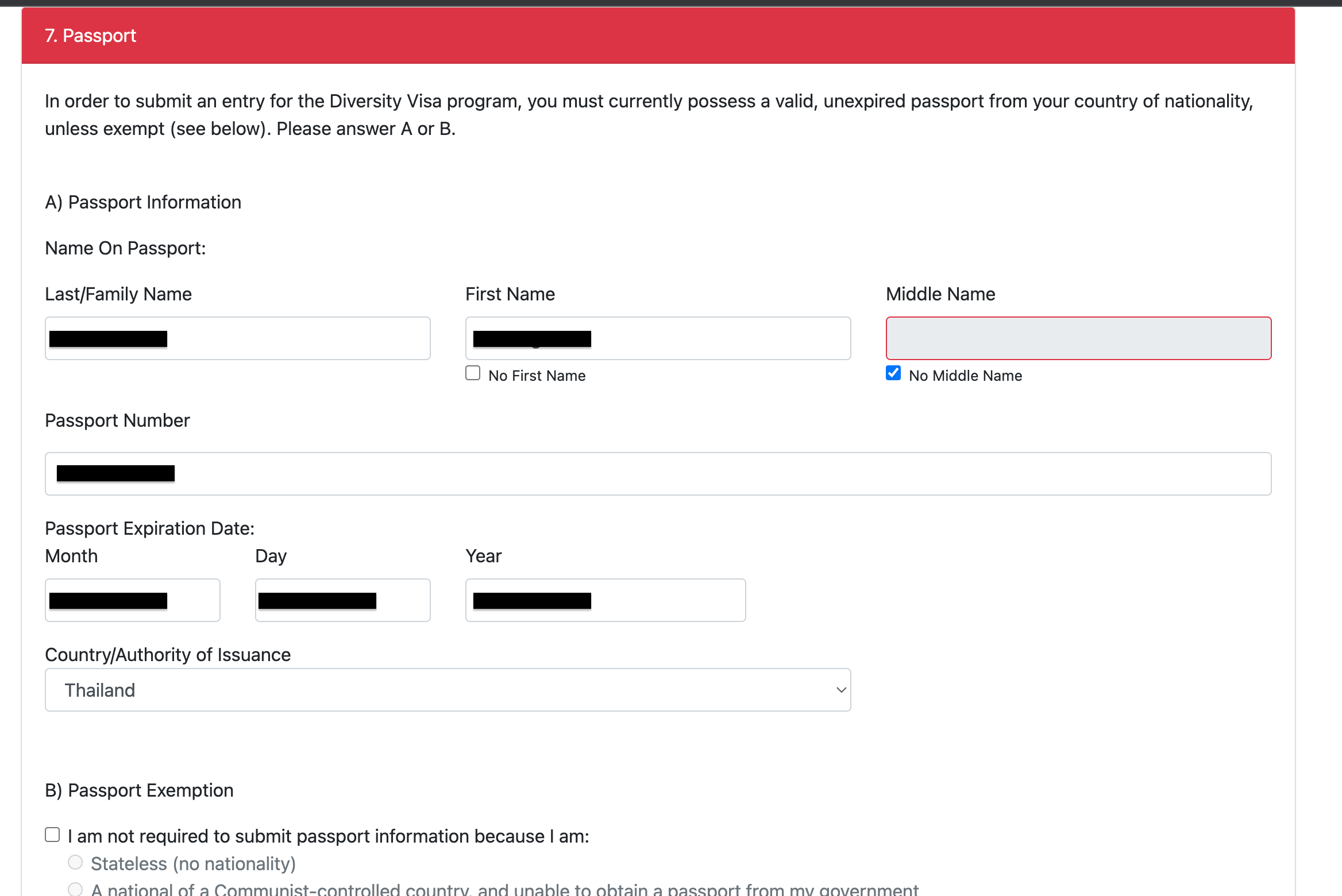 ตรง middle name อาจต้องใส่ว่า "not applicable" or N/A
