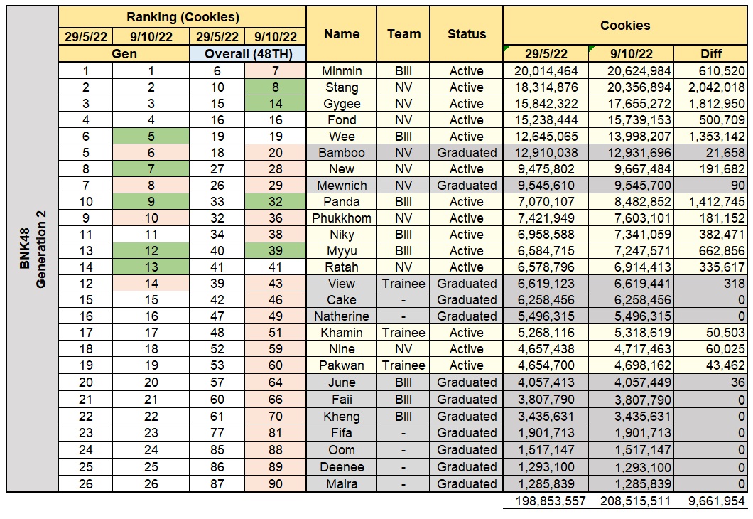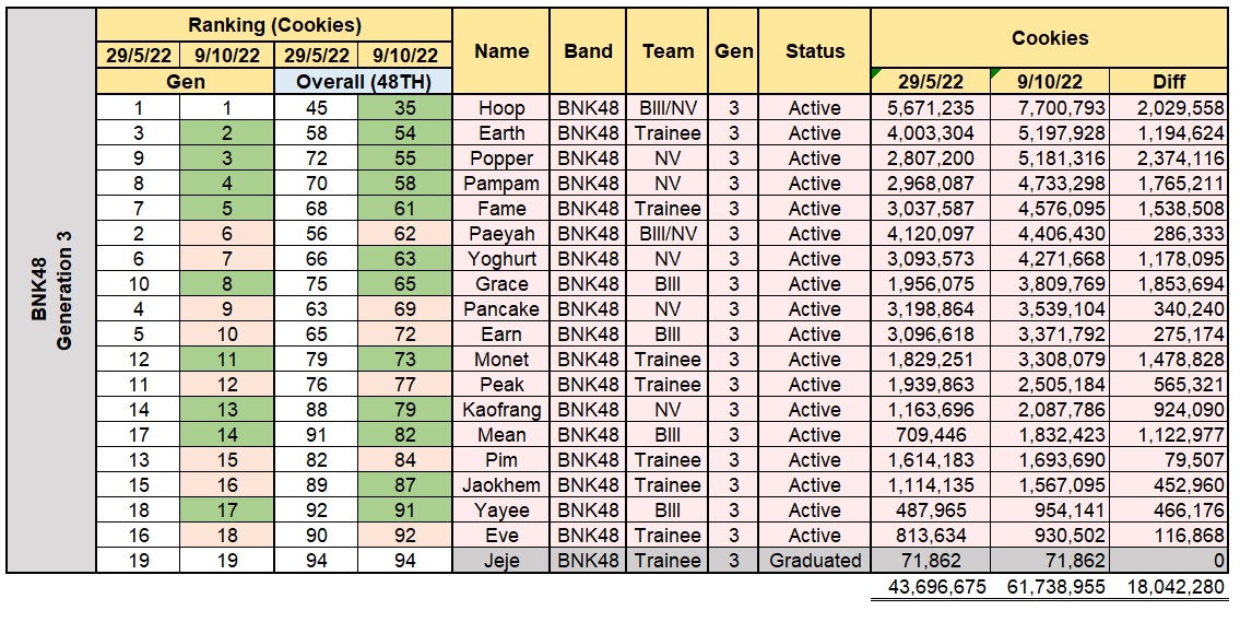 อันดับ Cookies รวมทุกเมมเบอร์ในแอพ iAM48 (ณ วันที่ 9 / 10 / 2022)