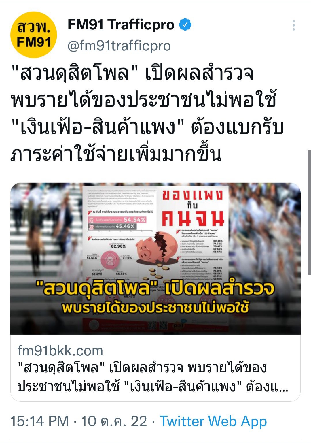 🔎 "สวนดุสิตโพล" เปิดผลสำรวจ พบรายได้ของประชาชนไม่พอใช้ "เงินเฟ้อ-สินค้าแพง" ต้องแบกรับภาระค่าใช้จ่ายเพิ่มมากขึ้น