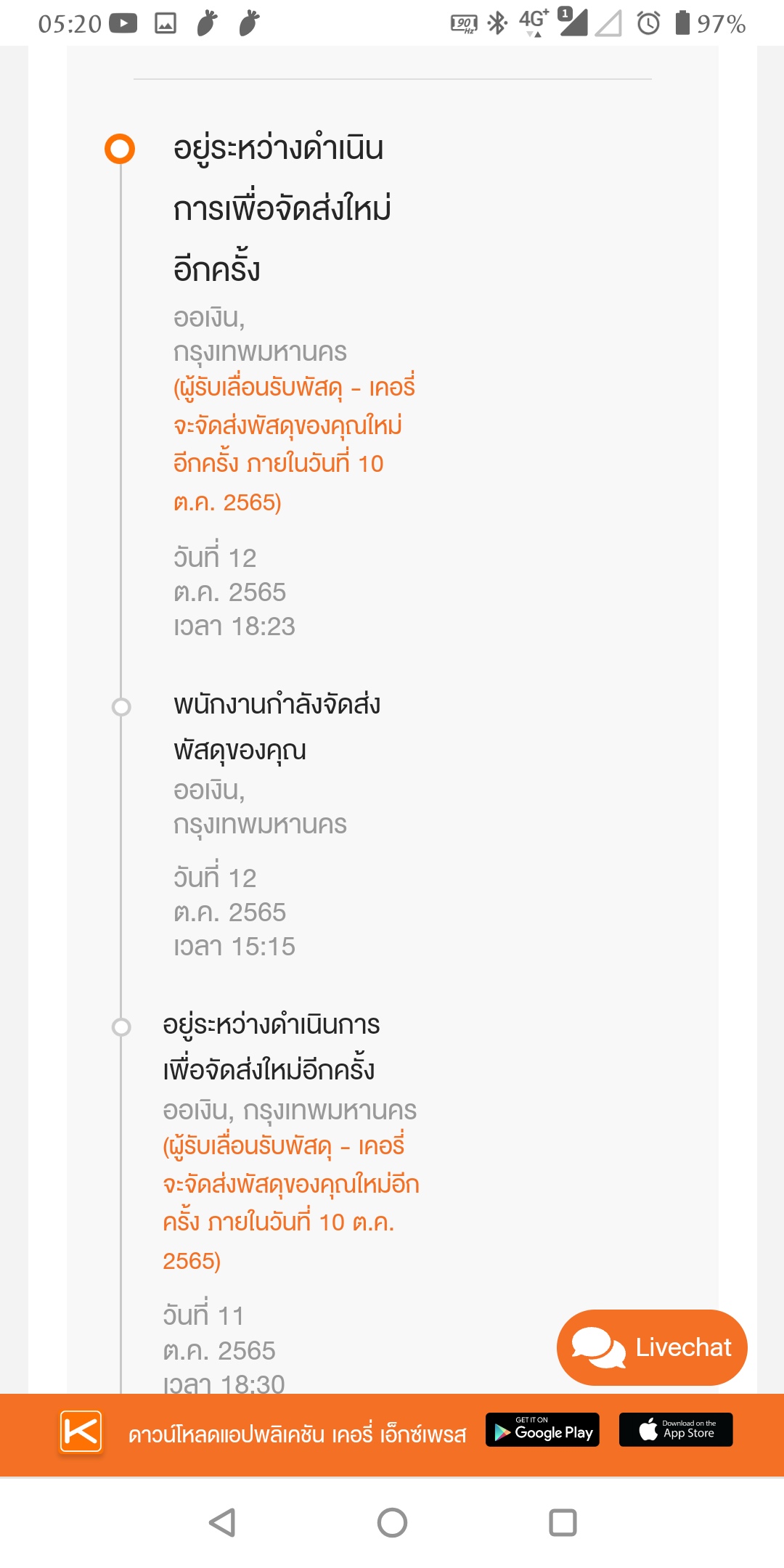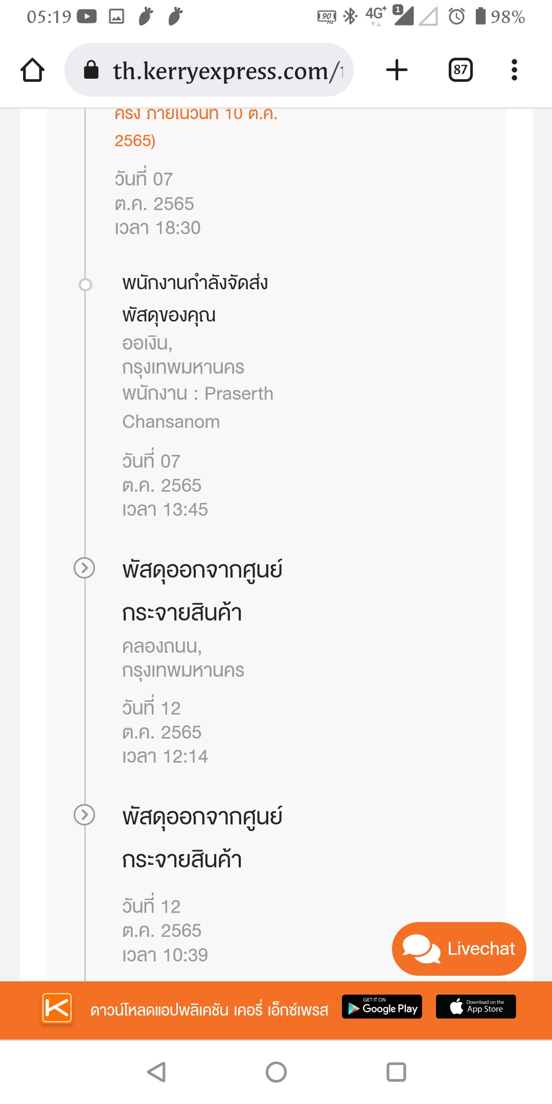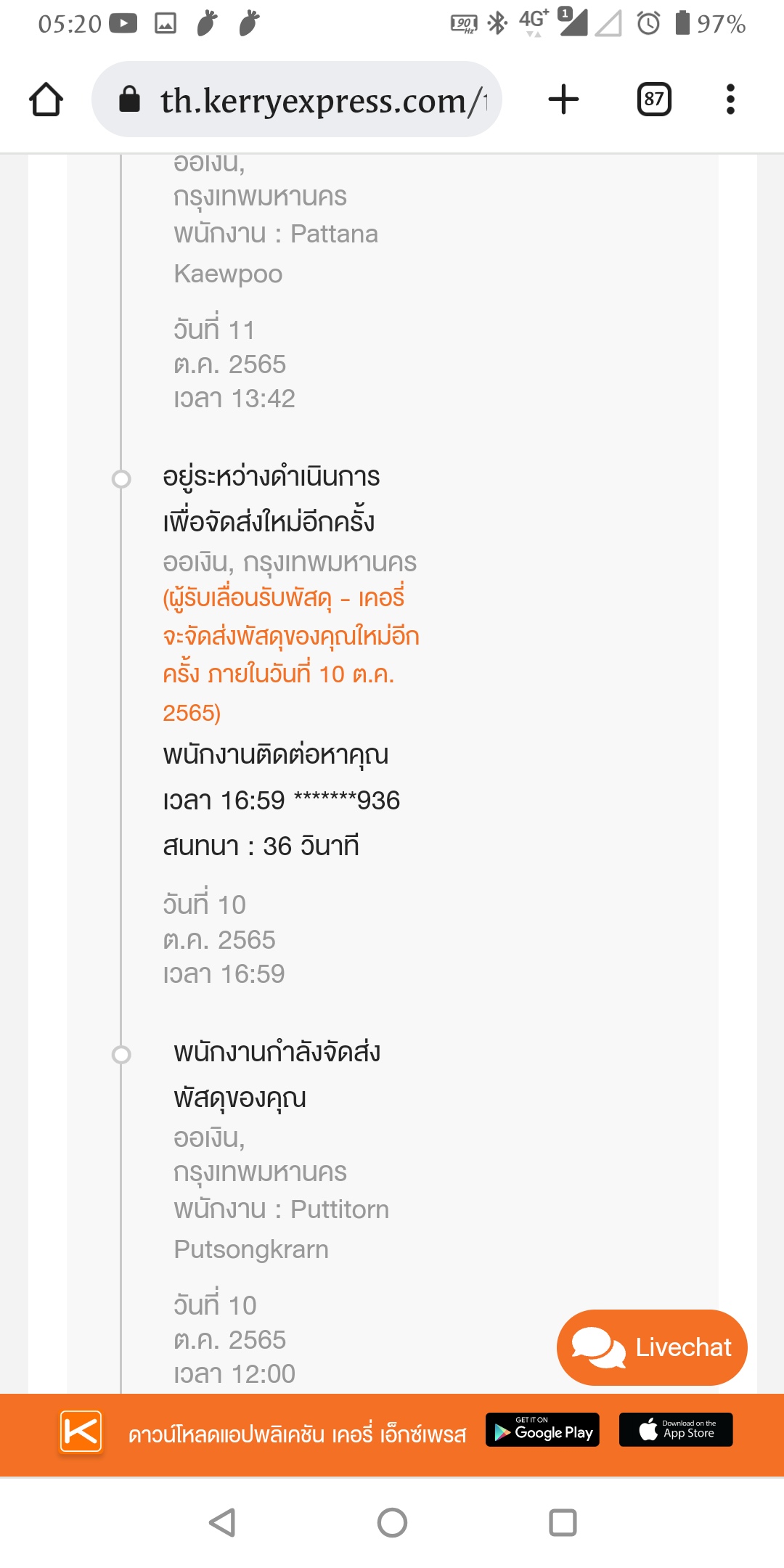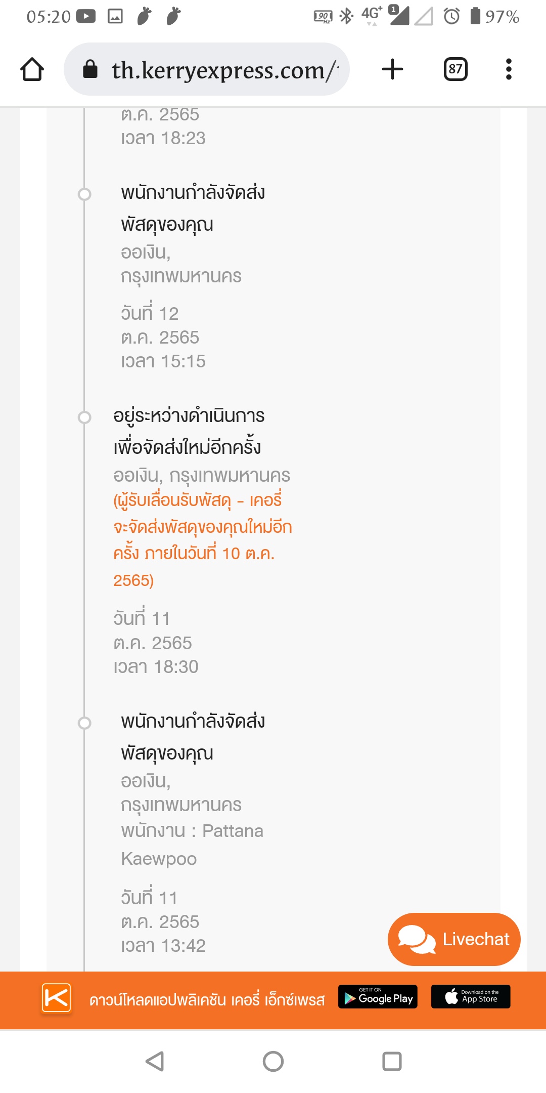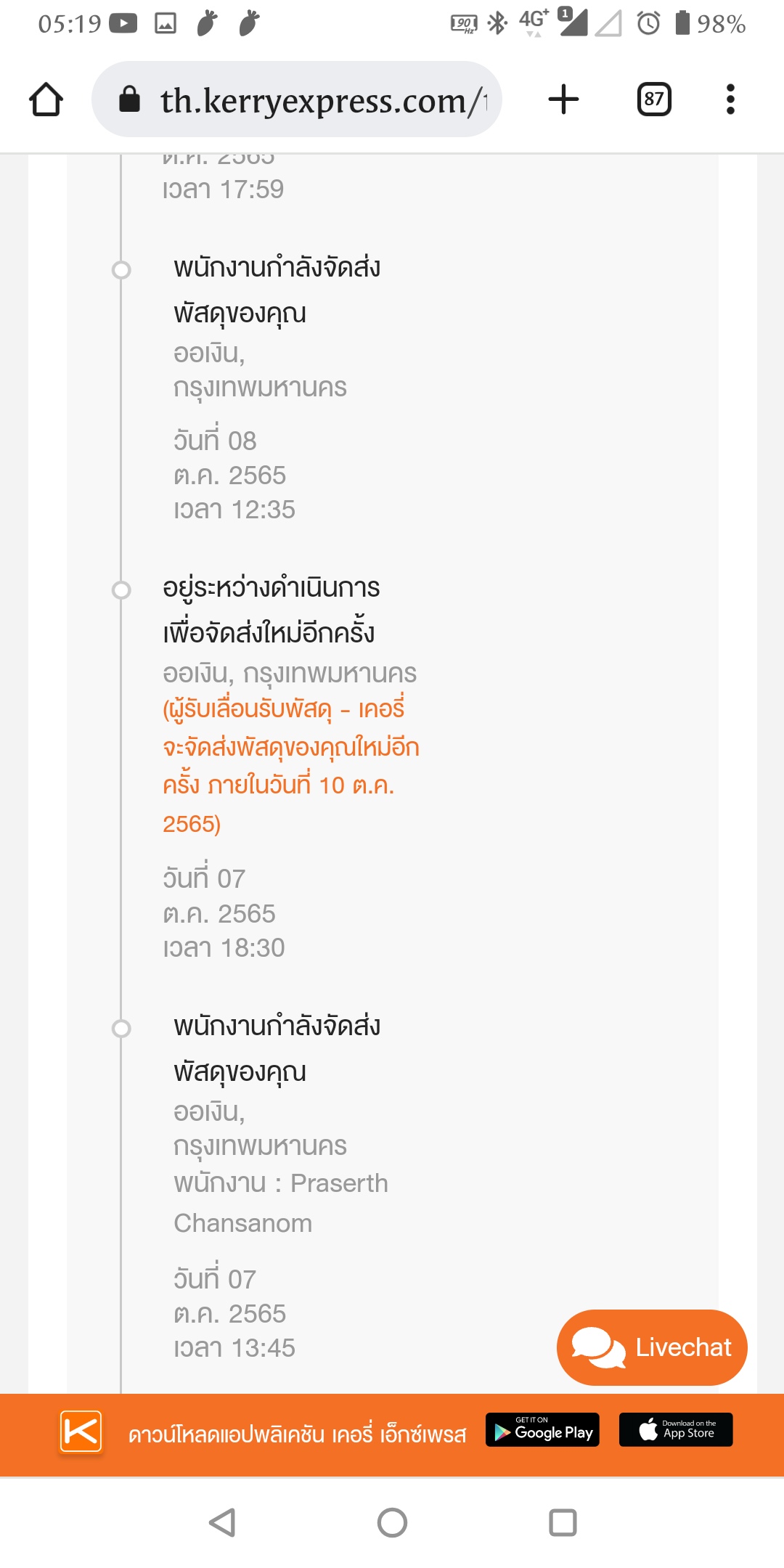 Kerry Express สาขา ลาดสวาย ตีกลับพัสดุ 3 รอบติด ไม่แจ้งเหตุผล
