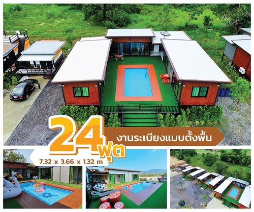 เติมเต็มความสุขจากการพักผ่อนและกิจกรรมให้ที่พัก ด้วยมุมสระน้ำที่ตอบโจทย์กับทุกคน เช่นที่นี่เป็นบ้านพักตากอากาศ ที่มีลักษณะบ้านน็อคดาวน์เป็นหลังๆ แบบส่วนตัว และมีสระน้ำintex 32 ฟุต งานระเบียงแบบขุด ตั้งอยู่ตรงกลางบ้านพักไว้พักผ่อนท่ามกลางสวนกลางธรรมชาติในวันหยุด ไม่ต้องเสียค่าที่พักหลายรอบสร้างพูลวิล่ากลางสวนเป็นของตัวเองสบายใจกว่าเยอะเลยค่ะ