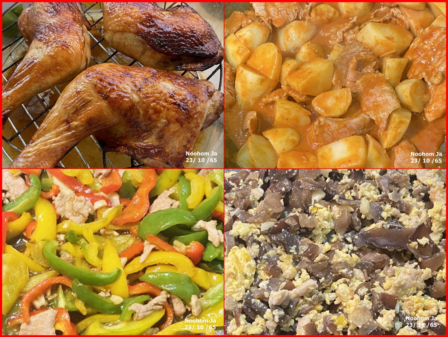 อาหารการกินบ้านเราเช้านี้ ไก่ย่าง..พะแนงหมู..ผัดพริกหวานสามสี..เห็ดหูหนูผัดไข่ พออยู่รอดได้อีกหนึ่งวัน ขอให้เพื่อนประสบแต่ความสุขสมปรารถนา โชคดีในวันนี้