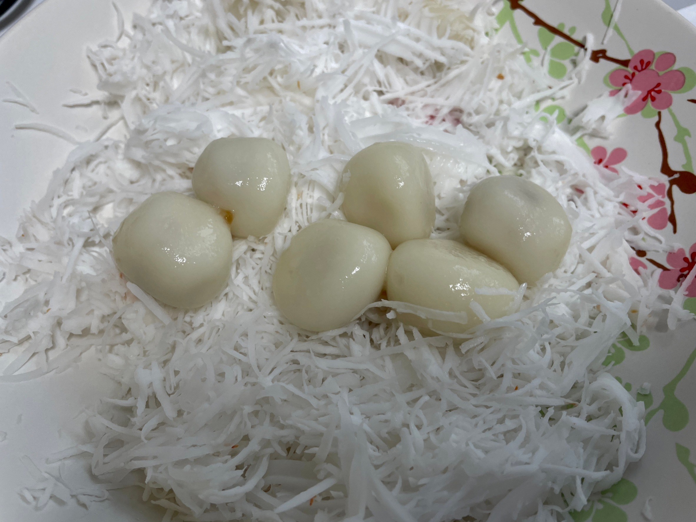 ตักมาวางบนมะพร้าวที่เราขูดไว้