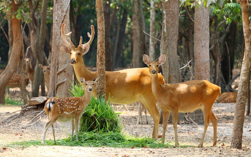 ได้ยินแต่เสียงดุเหว่าละเมอร้องก้องพนาเวศ พระกรรณเธอสังเกตว่าสองดรุณเยาวเรศเจ้าร้องขานอยู่แว่ว ๆ ให้หวาดว่าสำเนียงพระลูกแก้วเจ้าขานรับพระมารดา นางเสด็จลีลาเข้าไปดู เห็นหมู่สัตว์จตุบาทกลาดกลุ้มเข้าสุมนอ