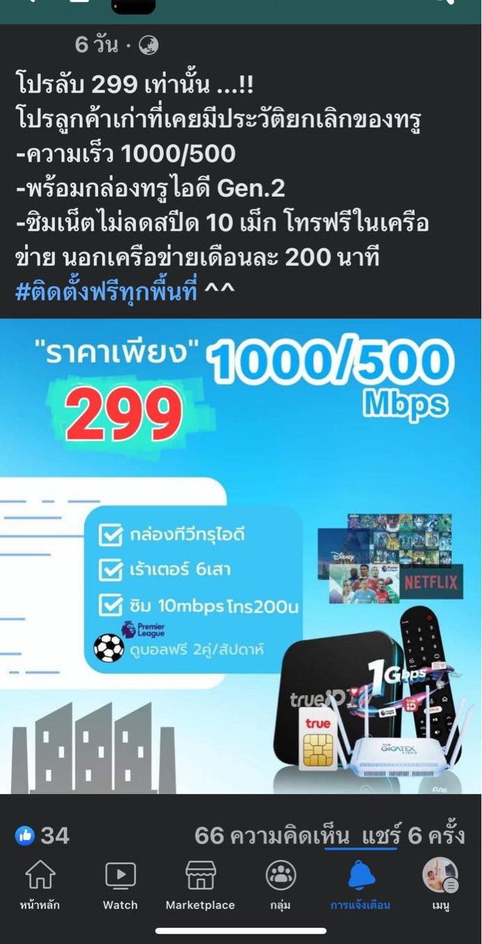 เนื่องจากผมใช้ทรูมานานหลายปีแล้ว หลายๆโปร เหมือนน้อยใจรนะ ลูกค้าเก่าไม่ให้ ให้แต่ลูกค้าใหม่ (แต่สำหรับผมควรดูแลลูกค้าเก่าให้ดีๆๆ จนเขาอยากอยู่กับเราไปนานๆ ) 299 ได้ขนาดนี้ ลูกค้าเก่าจะอยู่ได้หรอ ที่ผ่านมาจะย้ายออกหลายครั้ง แต่ครั้งหนี้ เขาไม่ให้ก็ต้องจากไป /แถวบ้าน มีเน็ตลงได้ทุกค่ายที่เห็น