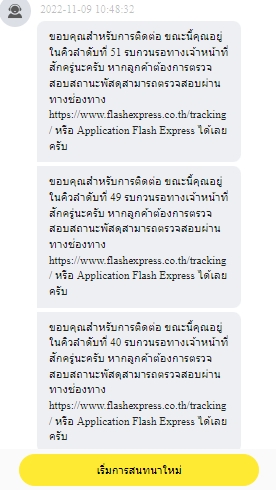 ขอสอบถามหน่อยครับ ผมได้ส่งของให้ลูกค้า ที่อยู่ ปทุมธานี เป็นขนส่ง Flash ส่งแบบ on-time delivery ทีนี้ ของไปถึงแล้ว โทรหาลูกค้า แต่ลูกค้าไม่ได้รับโทรศัพท์ ลูกค้าก็น่าจะติดต่อกลับแล้ว ลูกค้าก็รอรับสิน